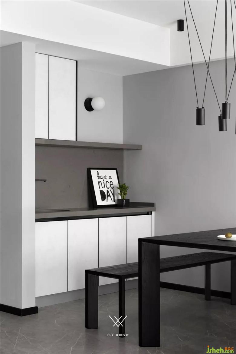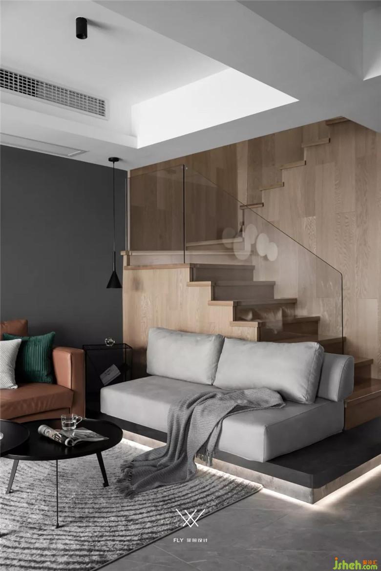 在這套居家空間里,裝修公司的設(shè)計(jì)師在滿(mǎn)足客餐廳公共活動(dòng)空間足夠開(kāi)敞和互動(dòng)性,保證效果的前提下,在很多不起眼的地方做了足夠多的收納空間。比如樓梯下的空間一部分劃分給客廳做雜物間,更多的分給廚房放冰箱,蒸烤箱。