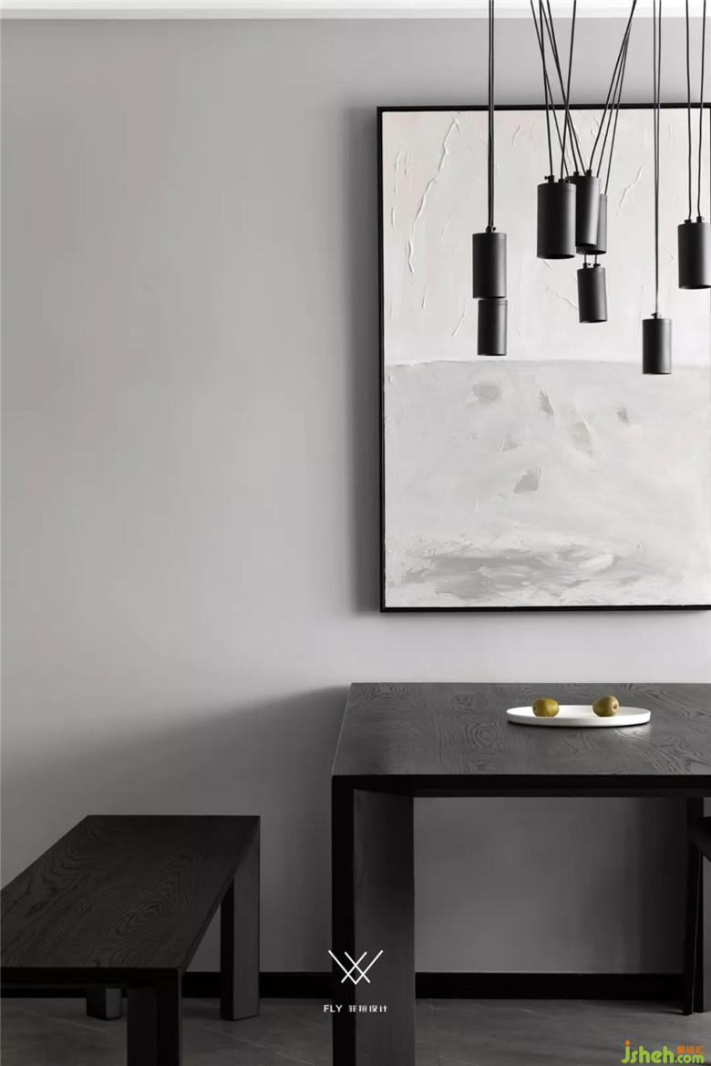從風(fēng)格上定義的話(huà),該案子是現(xiàn)代風(fēng)格?,F(xiàn)代風(fēng)格是去裝飾性的,更多的應(yīng)該體現(xiàn)在線(xiàn)條上的簡(jiǎn)潔,家具的形體和材料的質(zhì)感上。所以餐廳上沒(méi)有過(guò)多裝飾性的表達(dá),顏色也較素雅,而且線(xiàn)狀燈的選擇為餐廳增強(qiáng)了線(xiàn)條感。
