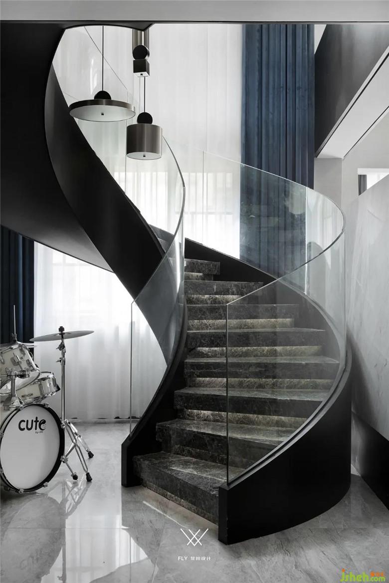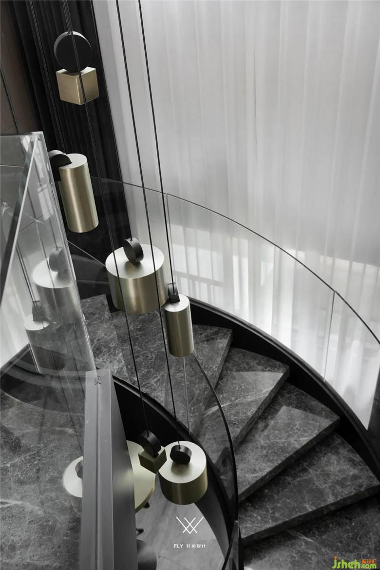在做客廳的旋轉(zhuǎn)樓梯同樣也遇到一些問題,旋轉(zhuǎn)樓梯施工難度大、新田沒有施工隊(duì)可以做符合設(shè)計(jì)意圖的弧形樓梯,業(yè)主也有過動(dòng)搖更改設(shè)計(jì)的念頭,在裝修公司的堅(jiān)持下,客戶輾轉(zhuǎn)找到了找了當(dāng)?shù)亟ㄖ哼M(jìn)行樓梯結(jié)構(gòu)的設(shè)計(jì)和實(shí)施,讓設(shè)計(jì)想法得以實(shí)現(xiàn)。設(shè)計(jì)師給出踏步大理石是材料小樣,客戶在本地找不到合適的石材版型,專程到長沙采購。扶手是整體鋼化玻璃的設(shè)定,當(dāng)?shù)匾舱也坏娇梢砸惑w成型的玻璃供應(yīng)商,采取了分段安裝拼接的方式完成其設(shè)計(jì)。