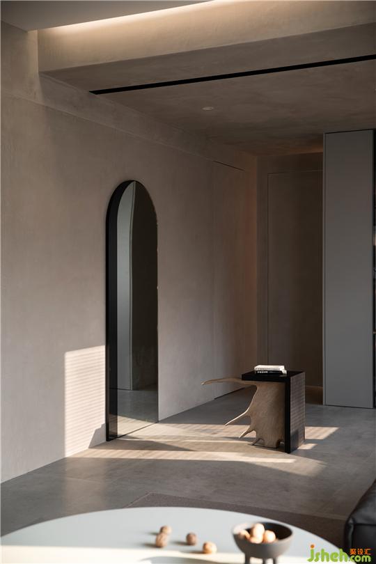 杭州家居設(shè)計(jì)粗獷的微水泥墻面,硬朗的材料與色彩,紗簾在風(fēng)中徐徐飄動(dòng),樸實(shí)雅致的氛圍下尤顯寧?kù)o安然,仿佛靜止了時(shí)光。