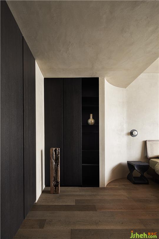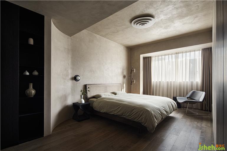 臥室主打暖色調(diào),選用偏黃色藝術(shù)漆營(yíng)造老房子土墻效果,沒有冗贅的裝飾,歸還純粹的睡眠空間。杭州家居設(shè)計(jì)重組空間結(jié)構(gòu),柜體推入墻體,墻面延伸曲面連至衣柜,空間銜接順暢干凈。