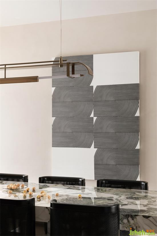The guest bathroom adjacent to the restaurant is moved back, leaving room for the sideboard to strengthen the storage function of the kitchen; Include island elements to provide more convenience for home life style.