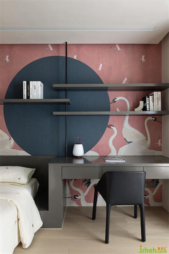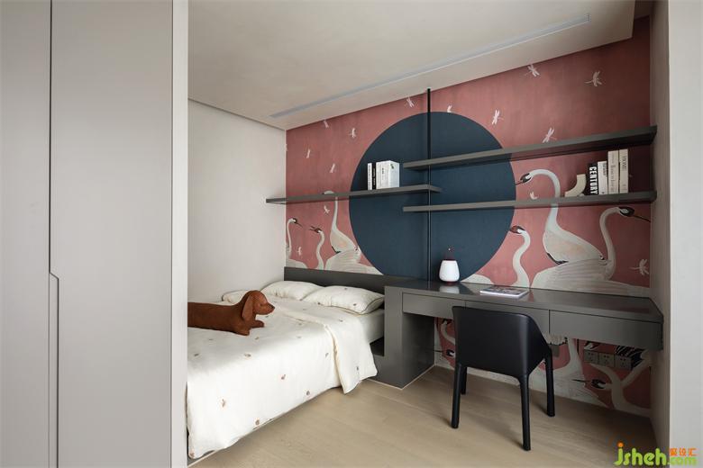 書桌兼具床頭柜功能與床頭室內(nèi)設計師靠背一體生成