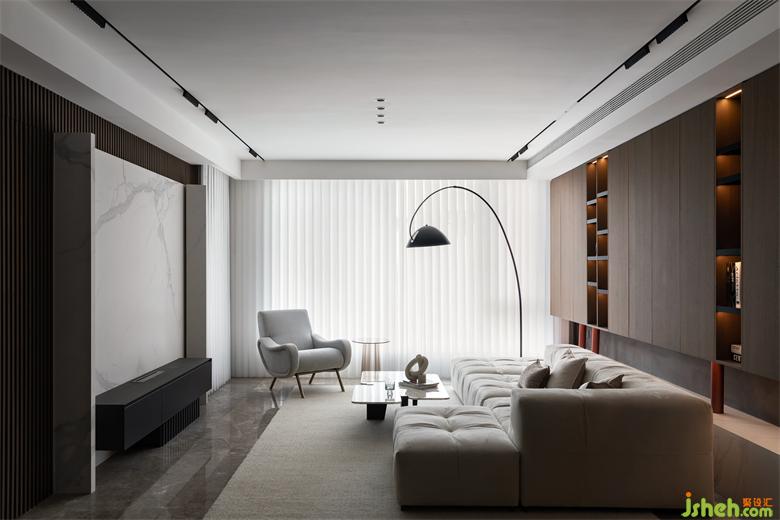 With gray as the main color of the space, we can see the large area application of wood veneer, grid and rock slab, which increases the visual level of the space, and at the same time, harmonizes the matching picture texture.
