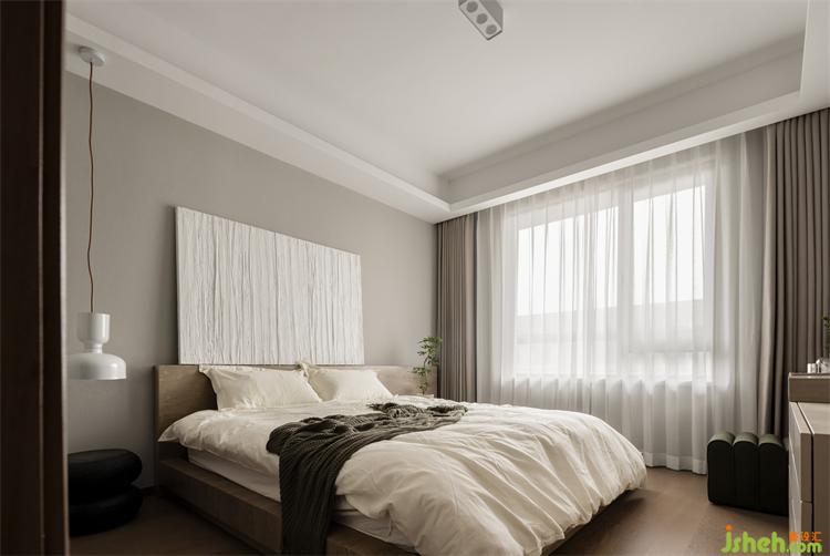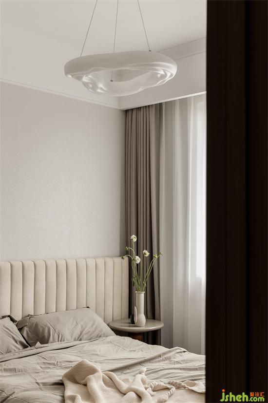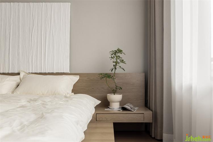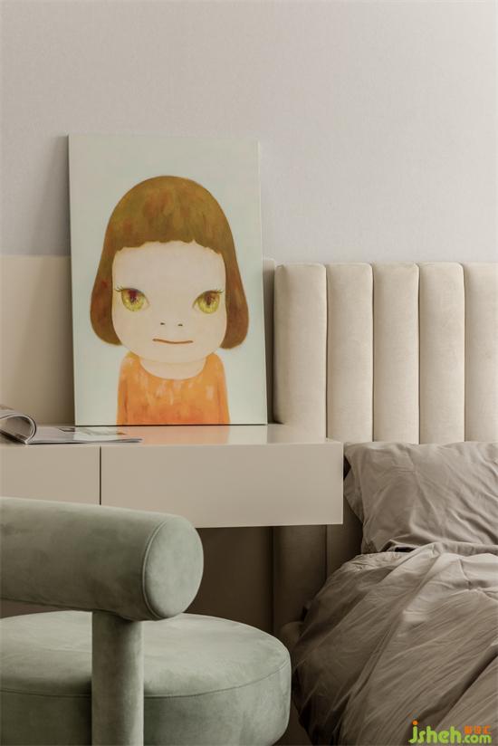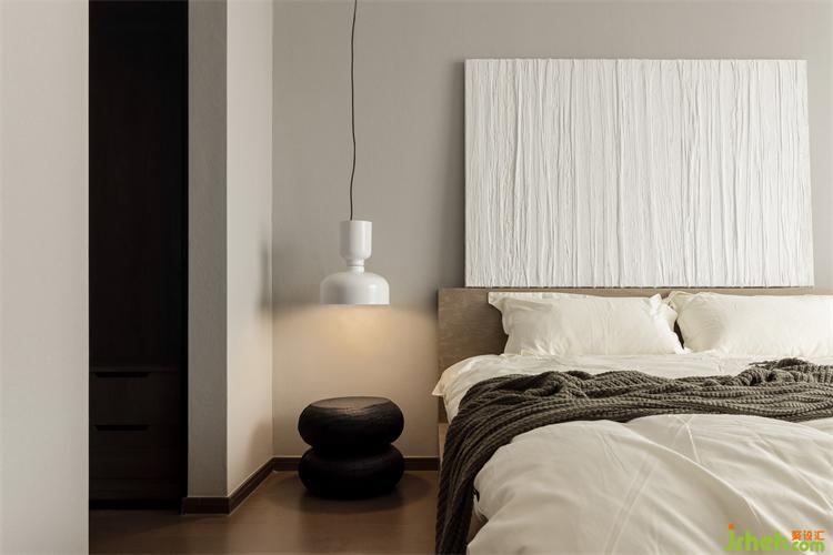 主臥的床頭背景裝飾畫為屋主親手所繪,禪意不失優(yōu)雅,杭州上坤山語(yǔ)四季裝修設(shè)計(jì)頗有幾分行至水窮處,坐看云起時(shí)的閑適之感。