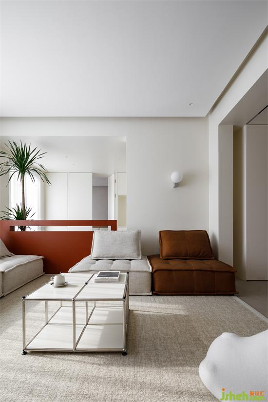 將空間中的一個(gè)房間開放出來(lái),增加公共空間以開放姿態(tài)呈現(xiàn);平衡對(duì)立力量,簡(jiǎn)單的結(jié)構(gòu)元素,顏色與體塊的接洽,打造藝術(shù)中的瀟灑與取巧。
