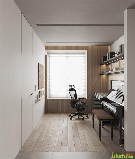可調(diào)式格局總是可以增加平面空間運用上的靈活性,杭州曉風印月裝修設計將原本局促的小房間做敞開式書房,區(qū)域的通透、光感的流動、過道的空間感都得以舒展。