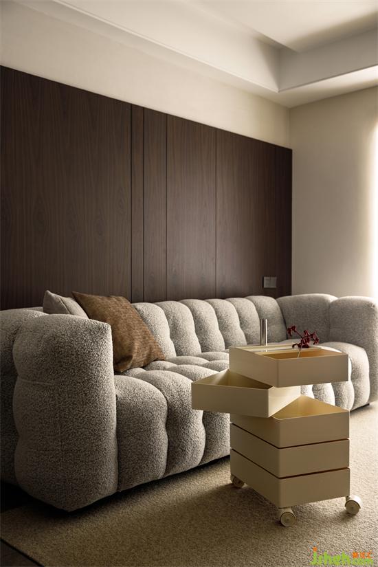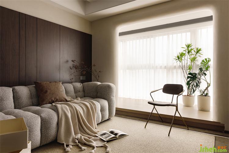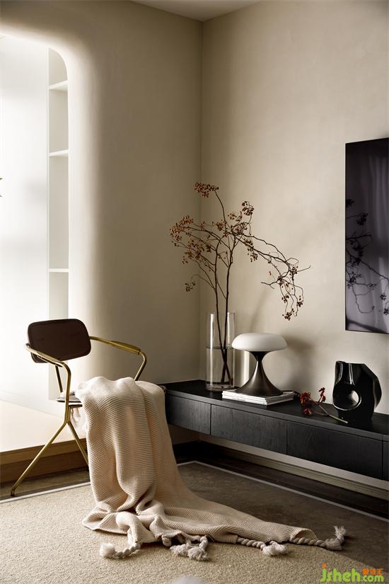 “居所”是私人的生活美感所在,點(diǎn)到為止的設(shè)計(jì),杭州和寧文華府裝修設(shè)計(jì)且得空間的靜謐與柔和。陽臺(tái)與客廳水平面上的高度差,滿足女業(yè)主對(duì)地臺(tái)氛圍感的期許。