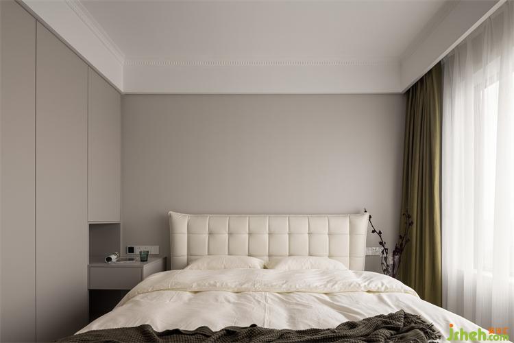 原睡眠空間相對狹小,杭州金成英特爾灣裝修設(shè)計將陽臺收入臥室讓房間得以保持更舒適的狀態(tài),伴隨著清淺溫柔的空間色彩隨之入夢。