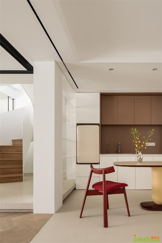 家居空間的展現(xiàn)形象來源于居者生活方式且隨之而變,以人為本依需而行,完善當下空間的家居使命。杭州西湖國際城裝修設計餐廚區(qū)根據(jù)需求調(diào)配放置二樓,與建筑結(jié)構(gòu)結(jié)合呈現(xiàn)有其特色的功能區(qū),感受不同形態(tài)下的空間魅力。