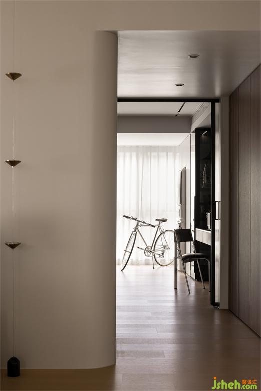 Preserve only one bathroom of home space, separate the bathroom from the master bedroom, and rearrange its functions to create a pure sleeping area. The gentle colors and suspended ceiling collide with materials, outline lines and blocks, and not only meet the needs of daily life, but also create a space atmosphere.