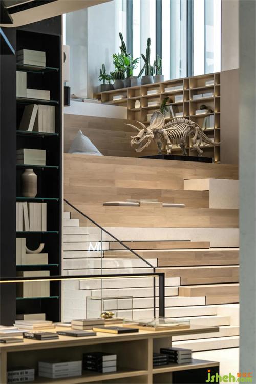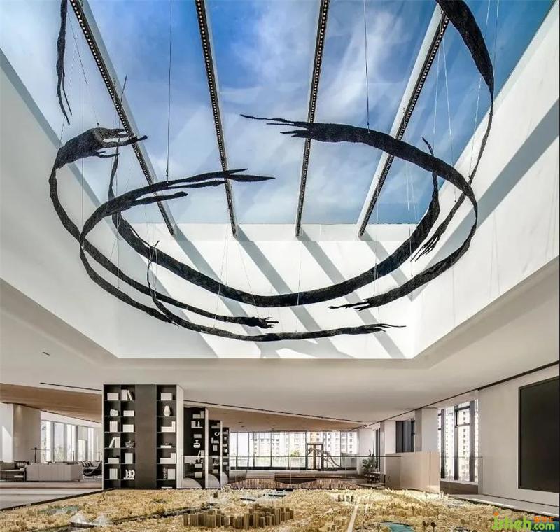 弧形藝術(shù)裝置懸吊于階梯上空,似承載夢(mèng)想的飛船般靜靜漂浮。隨著人們拾級(jí)而上,不斷沖擊著人們的想象力。