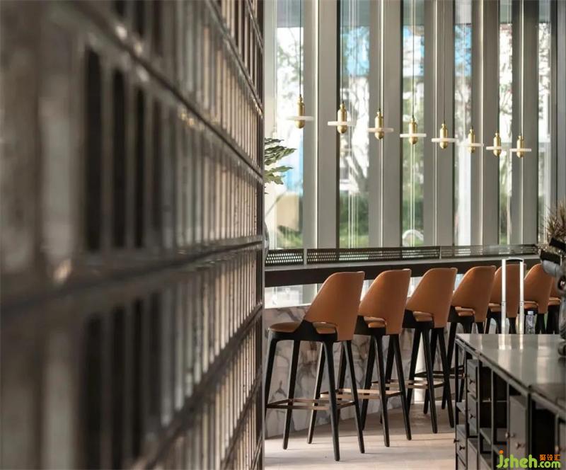 吧臺(tái)區(qū)通透的落地窗將室外美景攬入室內(nèi),條形長(zhǎng)桌更是為年輕潮人提供了交流討論的平臺(tái)。