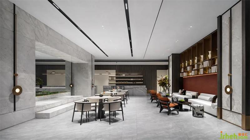 飛檐設(shè)計(jì)在晉江力高君樽府銷售中心重現(xiàn)了竹影萌動(dòng)、光影穿梭的一幕,利落又不失溫度的設(shè)計(jì)手法,營(yíng)造東方靜謐雅致的意境,既營(yíng)造置身所處的現(xiàn)世,又設(shè)計(jì)另一個(gè)精神上的后花園。