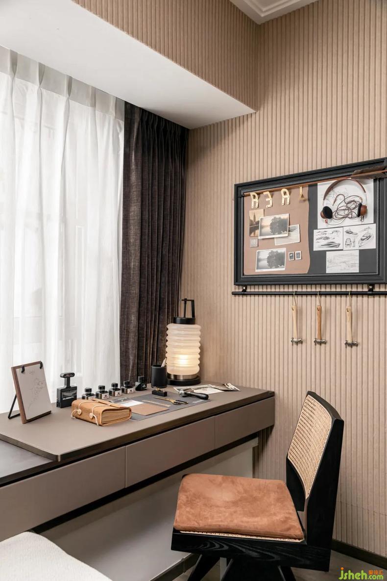 松軟的布藝、細(xì)膩的木質(zhì),層層疊疊,凸顯出側(cè)臥精致的生活品味,陽(yáng)光從絲質(zhì)的窗簾縫隙中滲透而下,于此,靜享安然自在的片刻時(shí)光。