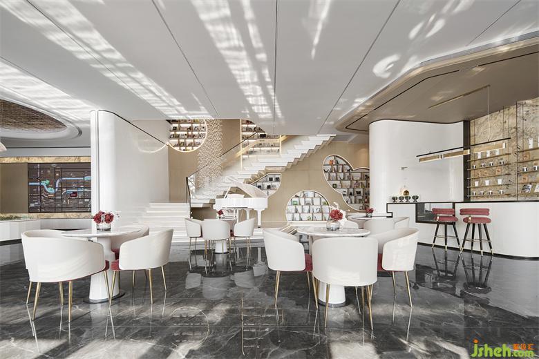 空間布局隨著建筑塑造的形態(tài)而展開,結(jié)合功能與需求,空間設(shè)計(jì)充分利用玻璃幕墻,對(duì)室外景觀不做任何遮擋,塑造人與自然、光景、與室內(nèi)的關(guān)聯(lián)互動(dòng)。