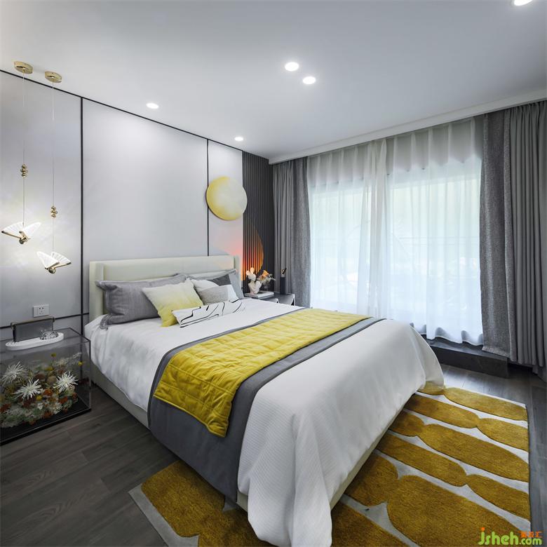 洋房設(shè)計(jì)以明黃作為軟裝設(shè)計(jì)的主色調(diào)緩緩鋪陳開(kāi),以灰白色的沉穩(wěn)為基地,略顯活潑的黃色在空間中有序穿插,日落燈、花藝床頭形態(tài)各異,構(gòu)成靈動(dòng)和諧的悅音,對(duì)愉悅的追求在明黃之中躍然紙上。