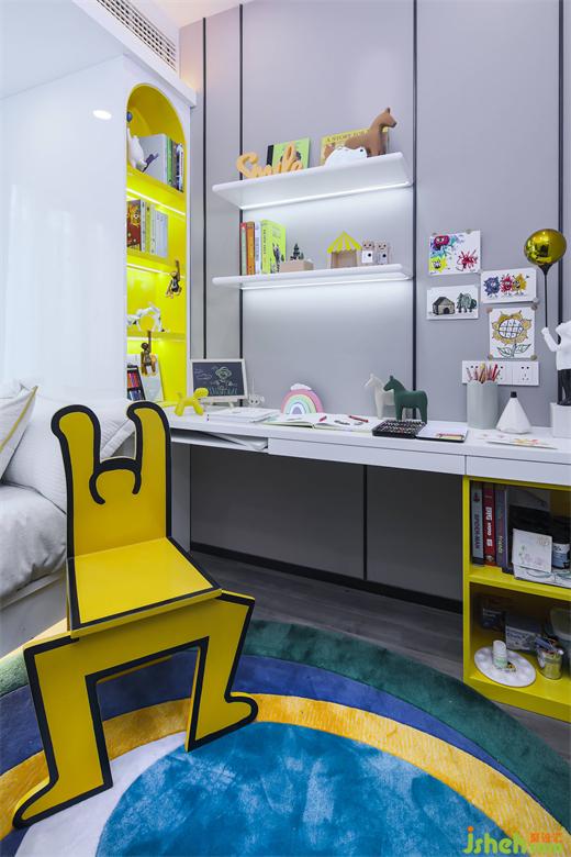 兒童房以男孩的涂鴉為靈感,提取今年潘通流行色,以黃色灰色為主傳遞細(xì)膩的質(zhì)感,給予視覺沖擊,通過對線條與色塊的巧妙應(yīng)用營造出穩(wěn)定、協(xié)調(diào)、溫馨的兒童空間感受,給予她們一個快樂的童年.