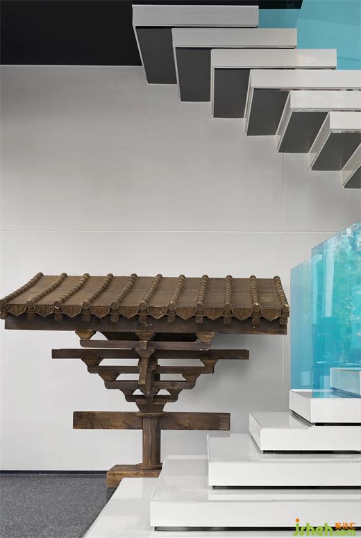 接待區(qū)加入了牌坊裝置藝術(shù),形式來(lái)源抽取了宋式牌樓的元素,用透明樹(shù)脂材質(zhì)打造了相似水晶牌坊,讓過(guò)去與現(xiàn)在宛如穿越時(shí)空之門般在這里相遇。