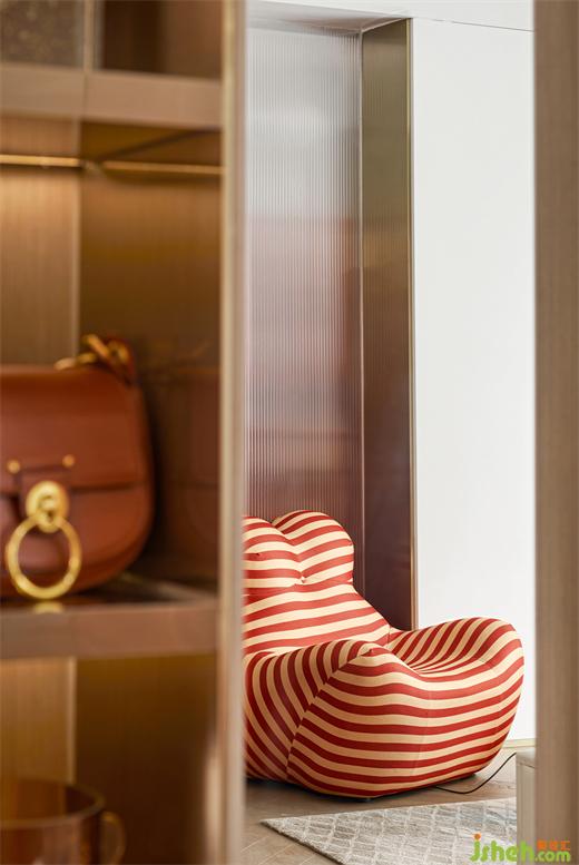 客廳也能擁有的豐沛收納系統(tǒng),合理的運(yùn)用墻體收納,讓收納變裝飾,同時(shí),也滿足了聚合家庭活動(dòng)空間的可能性。