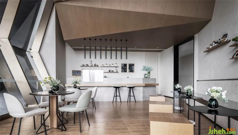 建筑大師賴特曾說,建筑是用結(jié)構(gòu)來表達思想的科學性的藝術(shù)??臻g體塊與線條穿插呼應(yīng),以解構(gòu)主義風格斜刺出挑,聚攏成突破性的視覺焦點,為空間內(nèi)寶石切面質(zhì)感的引入,搭建出“舞臺背景”。