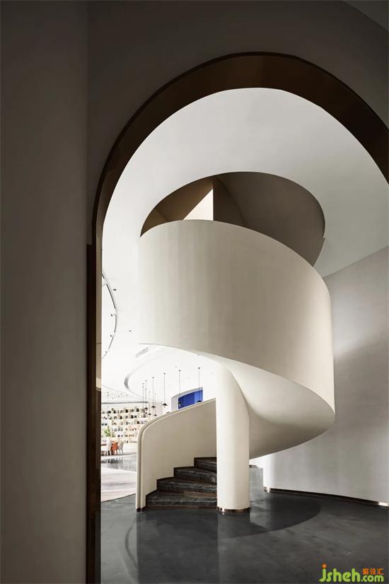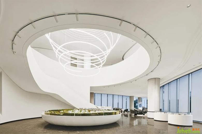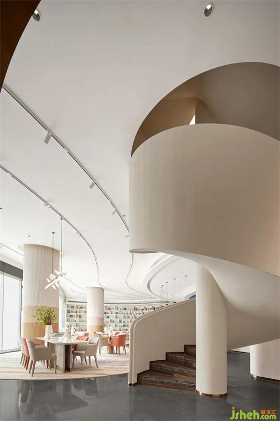 在這樣一個(gè)大廳內(nèi),建造了一個(gè)逐漸彎曲的梯子,重慶售樓處設(shè)計(jì)如同從天而降的飄帶一般,創(chuàng)造了一個(gè)空間威懾感的開(kāi)口。人的生命活動(dòng)充實(shí)著空間,讓空間與人的深度鏈接延展開(kāi)來(lái),緩緩流淌。