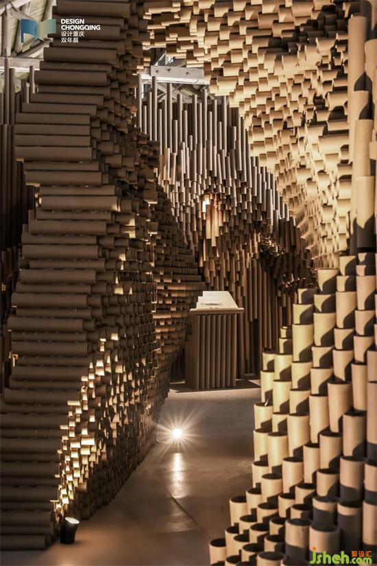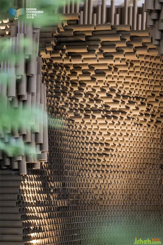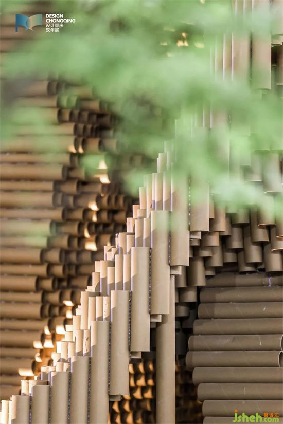 作品的海力設計師,從堆砌在倉庫中繁多的硫酸紙筒、以及在疫情之下社會的變化中獲得靈感。雜亂的堆疊,往往給人以“廢墟”之感,但只要簡單的變化,就能獲得“構建”般的重生。