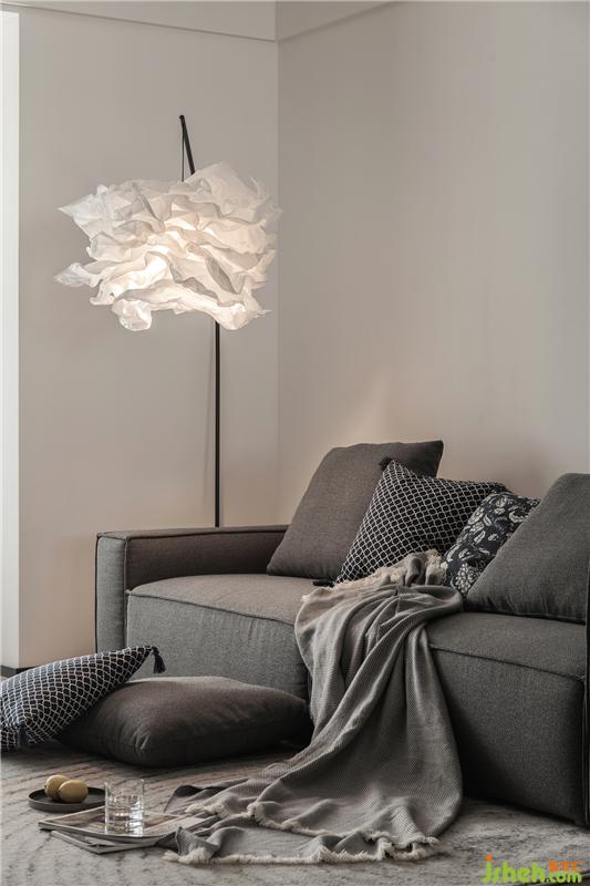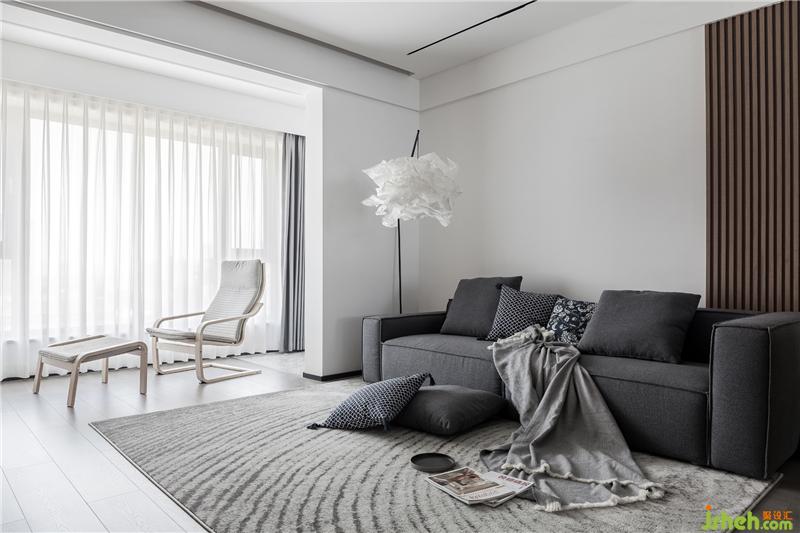 造型感極強的釣魚燈與地毯的圖案形成呼應廈門室內(nèi)設(shè)計。