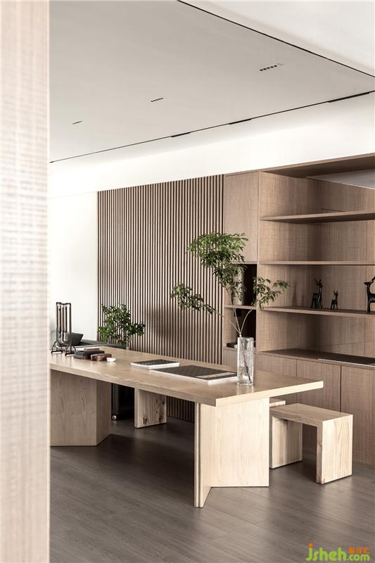 超長桌面的設(shè)計滿足了男主人想要開闊的寫書法需求,同時兼并接待朋友功能,與女主人互相不打擾。