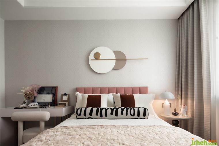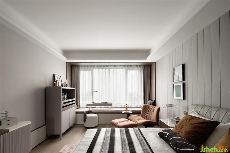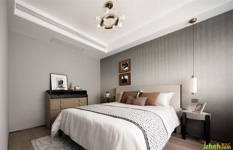 延續(xù)舒適用意,蔓延至睡眠區(qū),樣板房設(shè)計(jì)令原有的平和氣息持續(xù)為睡眠環(huán)境服務(wù),通過(guò)干凈的塊面和比例、輪廓,將簡(jiǎn)明的藝術(shù)隱秘地融入到了生活空間之中。