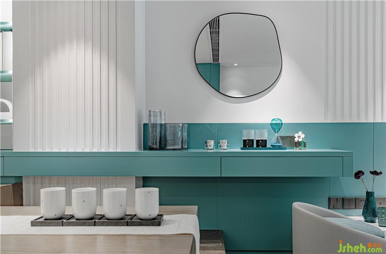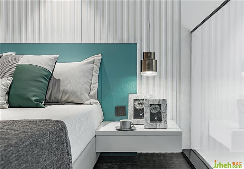 如果說下層的動(dòng)區(qū)充滿了流連的動(dòng)感,那么上層則體現(xiàn)著色彩的靜美。細(xì)框鋼化玻璃的加入,使上下兩層在戶型特點(diǎn)下并不完全割裂,視線和動(dòng)線的交互更為開放和輕盈。