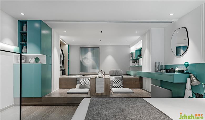抬高兩層級差,休閑區(qū)結(jié)合衣帽間、運(yùn)動(dòng)、休憩等多樣功能,既提高了空間的利用率,顯得活潑有趣。“剛剛好”的空間占比,提供的是徜徉、漫步、沉思和專注的自由。