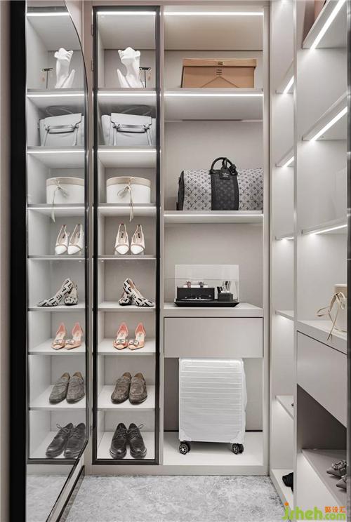 空間色調(diào)在儲物間得到延續(xù),陳列組合的設(shè)計手法,將“品味”與“生活”于鏡中一同展示出來。