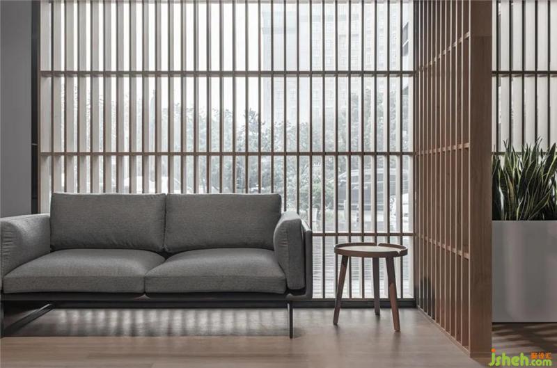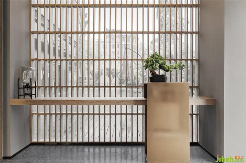 格柵界定了空間范圍的同時(shí)又讓視線得以延展,室外的景色因此蒙上了一層濾鏡,上海會(huì)所設(shè)計(jì)進(jìn)入室內(nèi)的光線也變的柔和。進(jìn)而模糊了室內(nèi)與室外的界限,讓空間變得不再棱角分明。