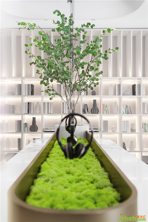 中央橫桌特意選用了圓角的造型,其上垂懸的一排耳機通聯著兩臺留聲機,黑膠唱片獨有的聲線緩緩流淌。無錫售樓處設計師試圖在視覺之外,滿足“耳聽”的感官體驗。靜享優(yōu)美之聲,人更容易放松下來,真正感受時間。