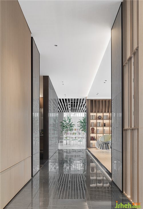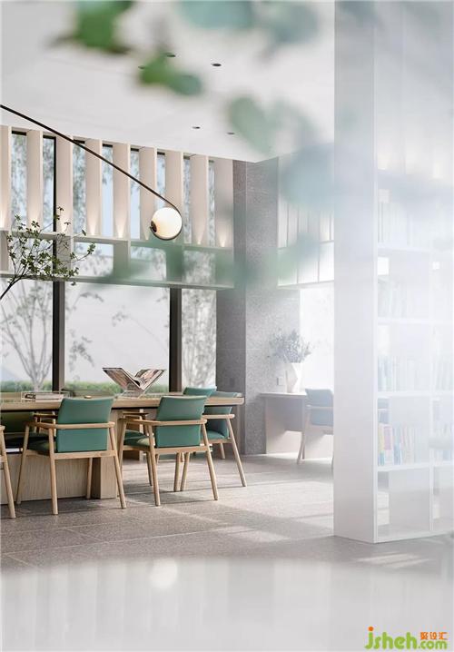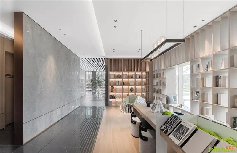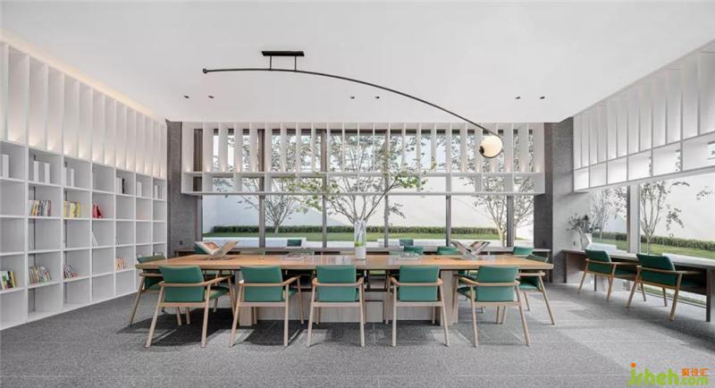 西側(cè)的玻璃大廳通透開闊,戶內(nèi)戶外相似的綠意,呼應(yīng)著勃勃生機(jī)。無錫售樓處設(shè)計(jì)利用這優(yōu)越的光線條件,空間劃分為圓桌書吧以及四點(diǎn)半學(xué)堂,兩者既開放又獨(dú)立,充分滿足住戶社交、兒童教育的功能。