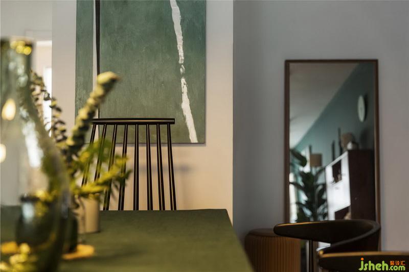 高低不同的溫莎椅成為了濃重色彩中的一縷清新,視覺上化解了擁堵感,讓厚重與輕盈間,穿梭自如。