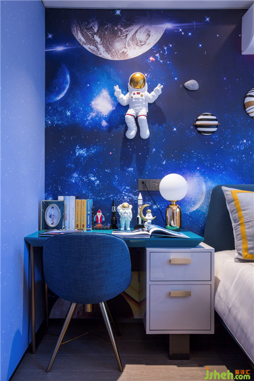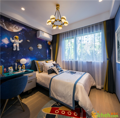 兒童房;兒童房采用太空元素的房間背景。讓原先傳統(tǒng)的房間顯得更生動(dòng)有趣。