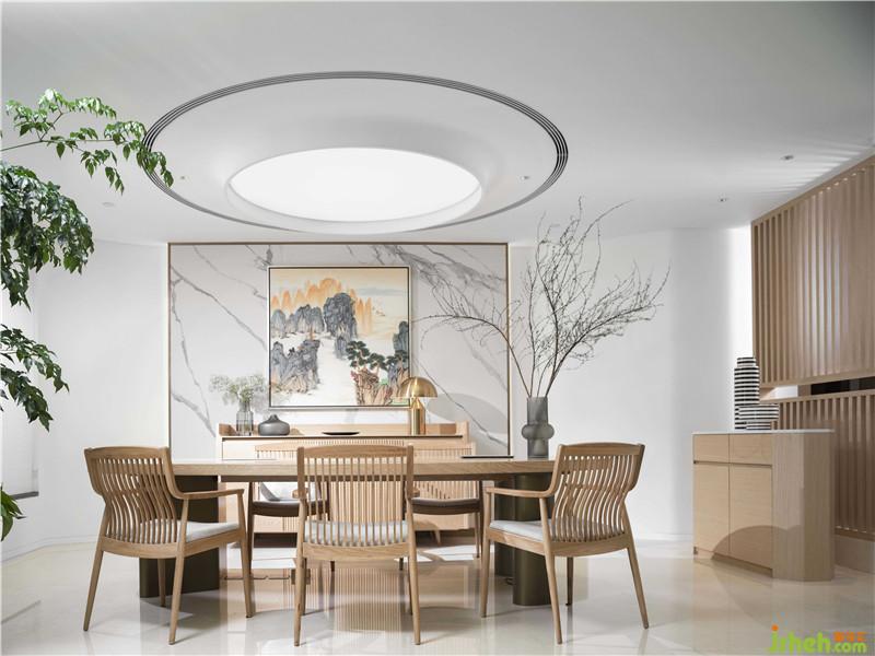 中央區(qū)域設計師沒有用傳統(tǒng)式實墻作為隔斷,而是以半透明的玻璃隔斷,賦以山水之墨,大氣磅礴。一方面使空間更加通透,打破實墻的壓抑感,另一方面又以山水之態(tài)氤氳空間氛圍,空靈而自然。