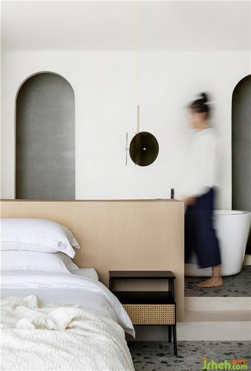 埂上設(shè)計(jì)在軟裝上規(guī)避過(guò)多雜飾與設(shè)色,在白色與木色的基調(diào)上,用別致的吊燈、彩色陶罐等圓潤(rùn)的弧形單品裝點(diǎn),令材質(zhì)的肌理在細(xì)膩與粗糲之間發(fā)生著對(duì)話,質(zhì)實(shí)而空靈,成為空間意境營(yíng)造的最佳注腳。
