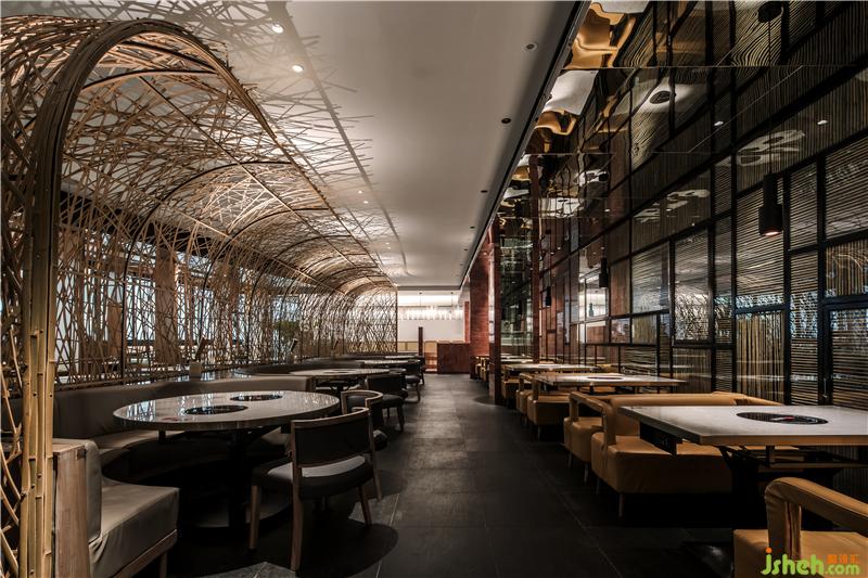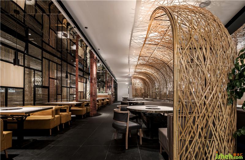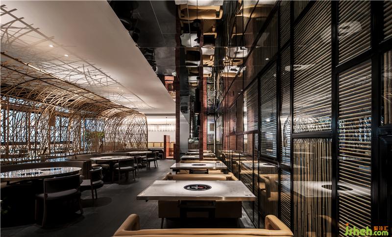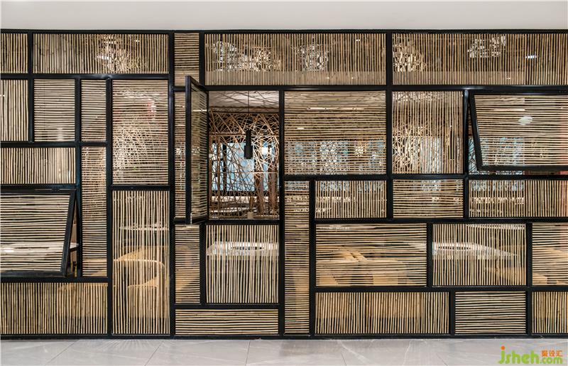 無錫氤氳的水墨山水帶給我們美好的體驗(yàn),而我們想將這種美好在空間里呈現(xiàn),竹子作為核心的設(shè)計(jì)元素貫穿其中,以不同的方式在空間活躍,鏡面映射出竹影,竹子的虛實(shí)變幻成就了空間的氣韻,“清風(fēng)恰幾許,竹影入畫來”營造出幾分東方的寧靜和優(yōu)雅。餐廳設(shè)計(jì)