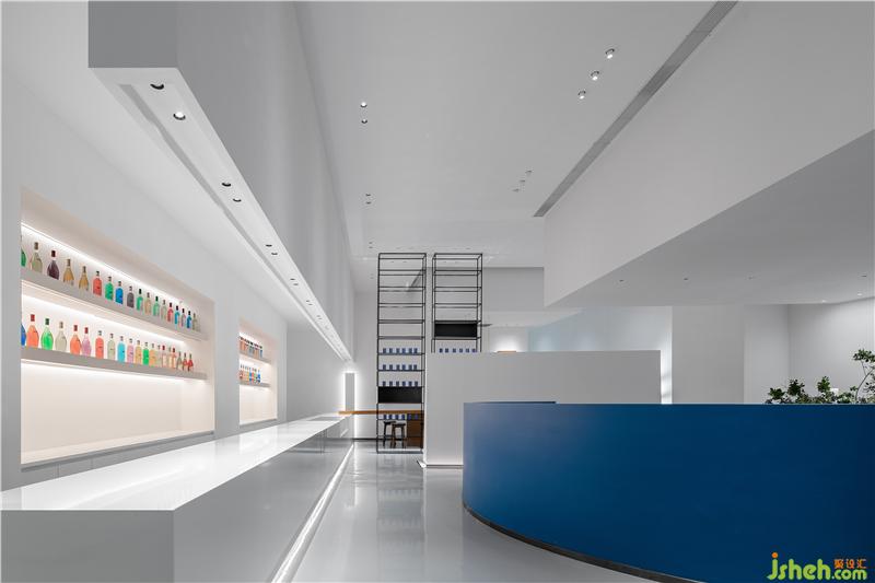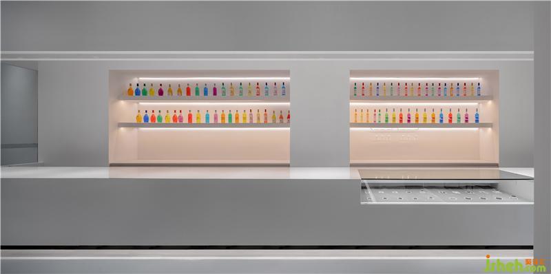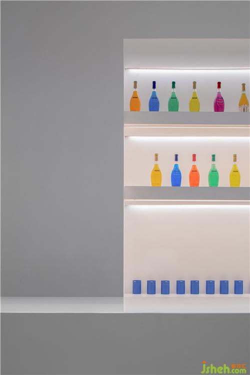 從場(chǎng)景氛圍入手,在吧臺(tái)區(qū)展示的線性照明下,設(shè)計(jì)通過各色酒瓶的有序陳列組合成碰撞的色彩關(guān)系,呈現(xiàn)空間極佳的視覺藝術(shù)效果,極大程度上調(diào)動(dòng)觀者的感官體驗(yàn)。