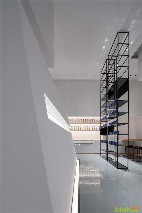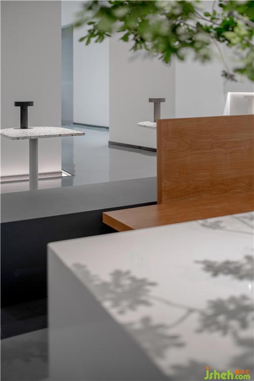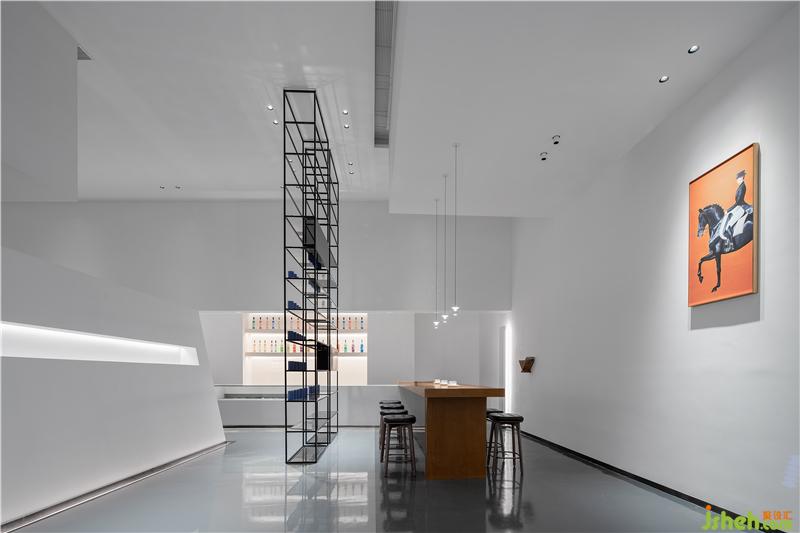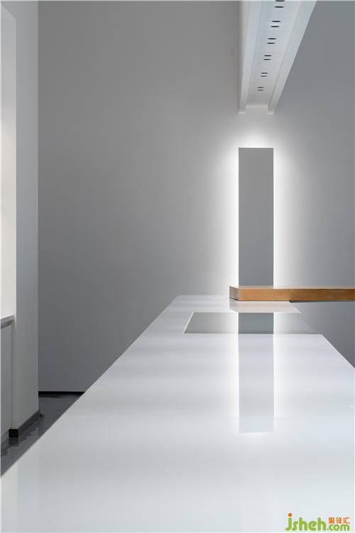 去除繁雜的元素,設(shè)計將極簡主義的幾何語言有序鋪排,形成空間和諧統(tǒng)一的構(gòu)圖關(guān)系,令其在自然純凈的配色中,跟隨光影的變化,顯現(xiàn)出平靜優(yōu)雅的秩序美感。展廳裝修設(shè)計