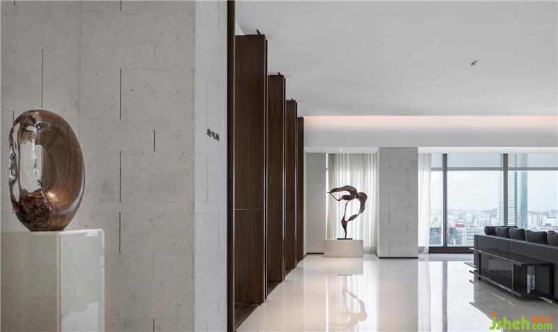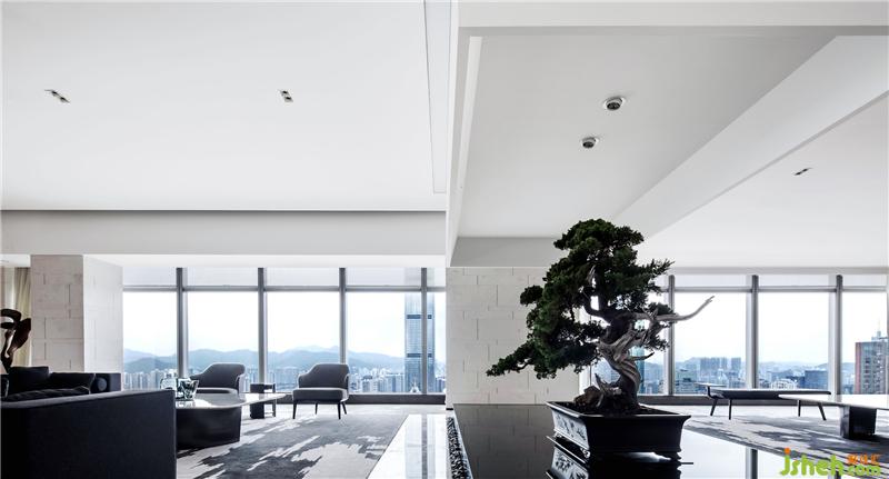 第一次置身于項目,正是華燈初上時刻,這里,幾乎收納了深圳整座城市的美與繁華。我們決意把城市作為室內(nèi)背景,以極簡干凈的會所設計,來收攬這座年輕城市的現(xiàn)代氣質(zhì)、寬廣氣象與自由精神。