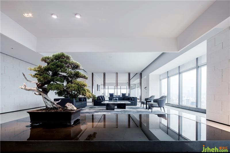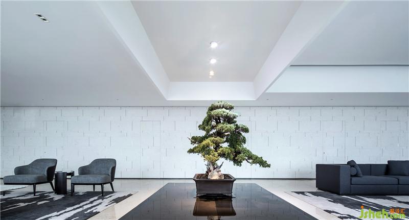 蒼勁青松、平靜水景、小巧鵝卵石,以及與之對應的有層次感的天花形式,為空間注入生活的藝術。