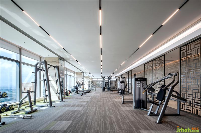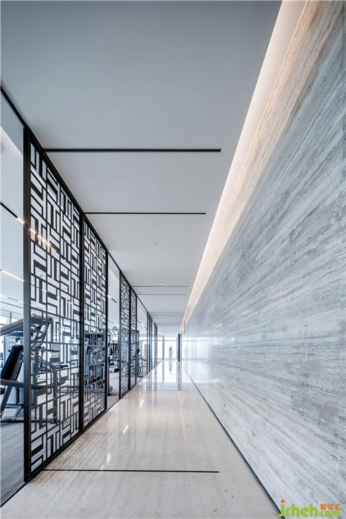 健身房的存在,不僅是生活方式的彰顯,亦是企業(yè)會所的一種儀式感。金屬鏤空的屏風隔斷,與透明的落地玻璃窗相互映襯,燈帶的線性美學與器械的秩序感在空間中延展,一如從生活到藝術的切換,對應著不同的場景體驗。