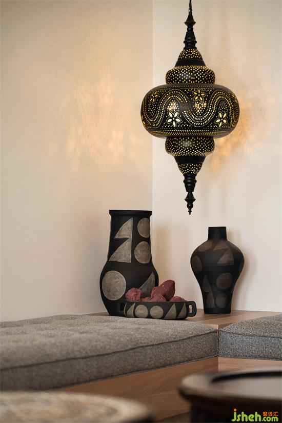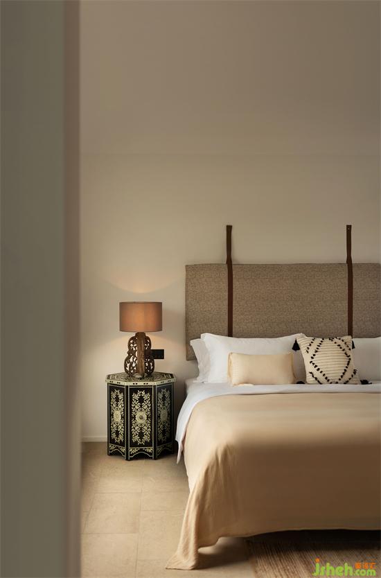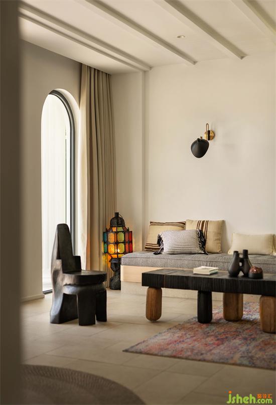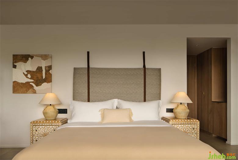 公共區(qū)域中豐富的木質(zhì)家居陳設(shè),以柔和的肌理為空間的情緒傳遞溫暖。樹木生長的年輪印刻著過往的歲月痕跡,也傳遞著都市人勇于掙脫城市束縛、投身自然的設(shè)計(jì)理念:度假酒店設(shè)計(jì)以城市孤島中的漂浮意象,度假酒店設(shè)計(jì)投射現(xiàn)代人內(nèi)心渴望理解與親近的孤獨(dú)狀態(tài)。