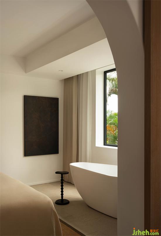 每個人都會有 POWER OFF 的至暗時刻,也會向往短暫的逃離。度假酒店設(shè)計而設(shè)計的本質(zhì),在功能性和情感之間尋求一個平衡,讓使用者在被主題化的空間里找到自我認同。從進入房間的瞬間,迎面而來是碧波的無限包容。通過大面積落地開窗,將環(huán)境的生動觸感引入到室內(nèi),窗外的山海與綠蔭爭先恐后地跳脫到面前,鮮活而美好。
