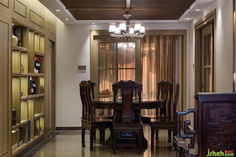 餐廳與客廳相連為一個整體使得整個空間更加寬闊、舒服,深圳室內(nèi)設(shè)計師定制的酒柜是業(yè)主的心頭好,既作墻用,節(jié)省空間又作酒柜,可擺放藏酒與藝術(shù)品,柜子鮮活的嫩木色彩與紫檀餐桌的厚重紫黑色形成對比,既有清新活潑又有醇厚古樸,兩種原木色同處一個空間互相制衡,又相得益彰。