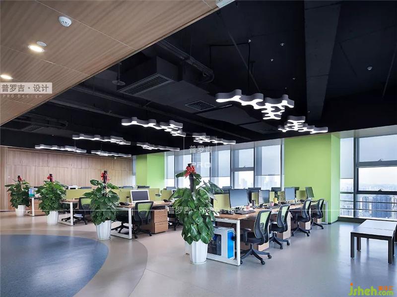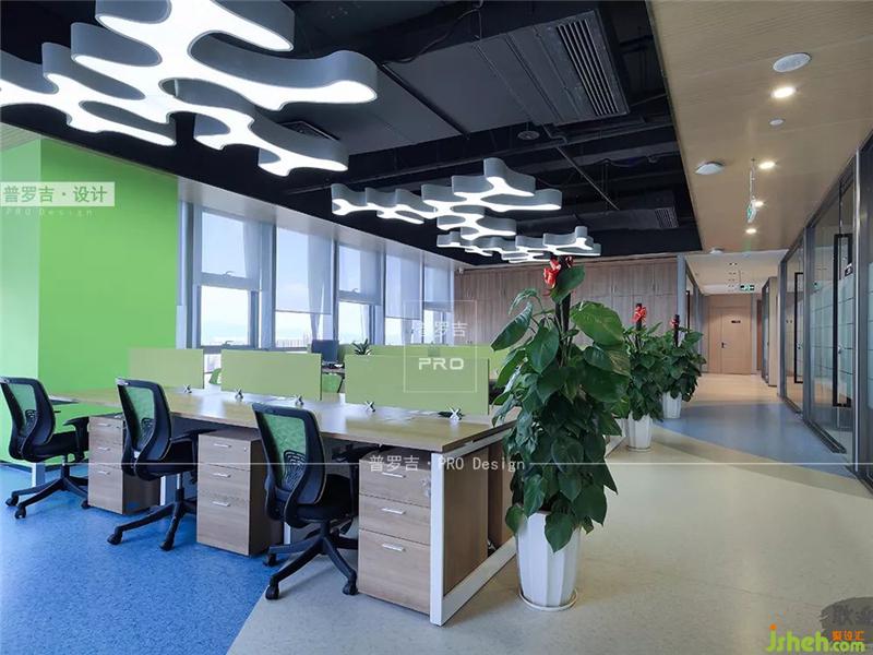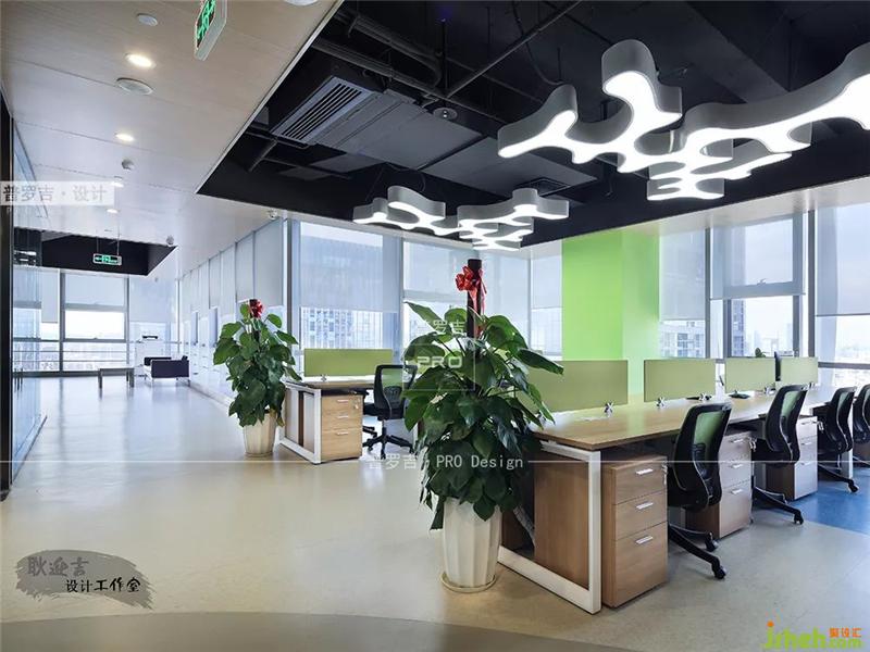 辦公區(qū)是現(xiàn)代辦公室的風(fēng)格,注重實用性和功能性。在視覺上以嫩綠色為主,猶如第一場春雨過后,嫩芽冒出的那一抹色彩一樣,實在令人心情振奮。天花上的燈飾造型也非常有特色,類似海底的藻類植物,也與前面的“水”、“自然”等設(shè)計元素前呼后應(yīng)。辦公室設(shè)計